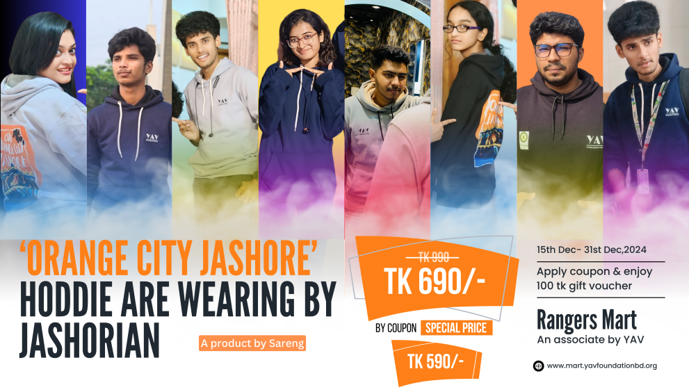 অরেঞ্জ সিটি হুডিতে একঝাক ইয়াভিয়ান December 21, 2024 0 1 min read সাম্প্রতিক সময়ে ইয়াভ ফাউন্ডেশন তাদের আইকনিক প্রজেক্ট “অরেঞ্জ সিটি” ব্রান্ডিং এর হুডি জনসম্মুখে এনেছে, যা উৎসুক যশোরিয়ানদের মনে ব্যাপক আরম্বরতা এনেছে । এই হুডি’র প্রডাকশন করেছে পোশাক শিল্প প্রতিষ্ঠান ‘সারেং’। নতুন এই হুডি’র উদযাপনে একঝাঁক ইয়াভিয়ান । Share:
